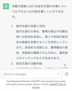 ・AI:「労働力調査における就労支援の仕事について以下のような内容の文章を書くことができます」